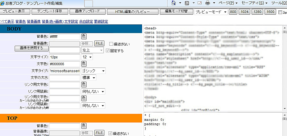テンプレ(スタイルシート?と言うのかな?)いじろうにも、HTMLの編集画面
